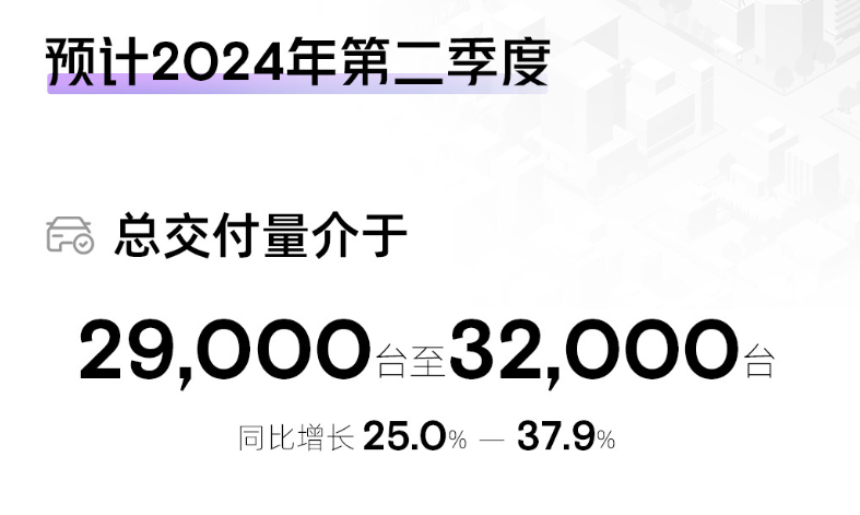 小鵬二季度預計交付量在29,000輛至32,000輛之間,四月交付量為9,393輛,剩下兩個月小鵬平均每月銷量要達到一萬輛以上才能完成目標。