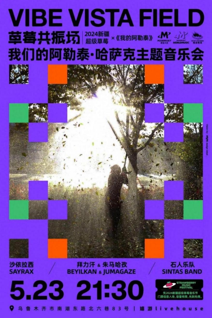 5月23日本周四晚,草莓共振場將聯手烏魯木齊嬉游Livehouse,舉辦一場名為《我們的阿勒泰》的哈薩克主題音樂會。兩位哈薩克族音樂大師沙依拉西和拜力汗將領銜表演,而石人(Sintas)樂隊也將以不插電民謠形式參演。