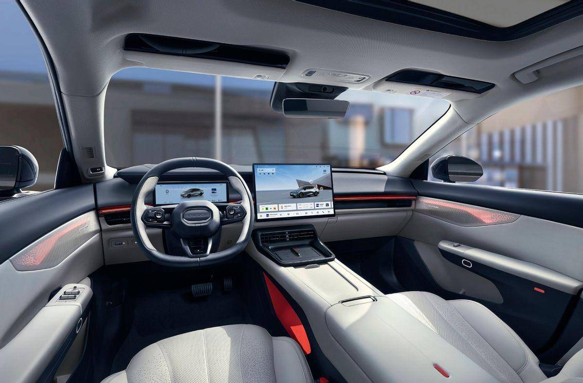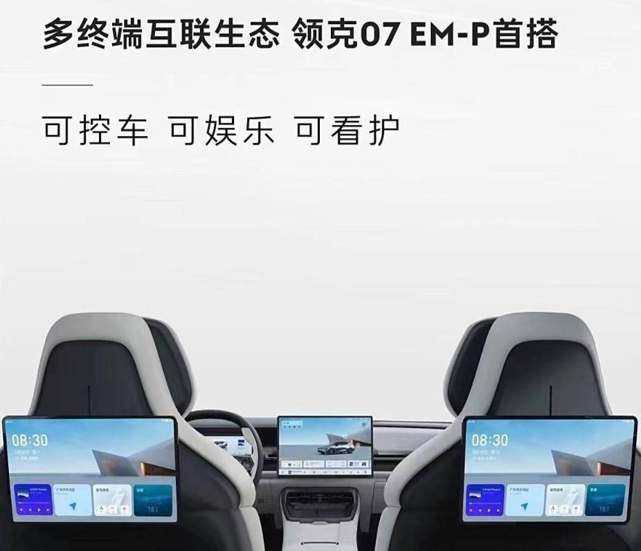 內飾部分,領克07 EM-P更為簡潔,并且用上了懷擋設計,中央通道區域儲物空間更加充裕。中控臺上只有一塊15.4英寸的中控屏幕,搭載魅族提供的Flyme Auto車機系統,芯片也是自主研發的龍鷹一號,并且搭載了兩顆。雖然功能比較豐富,但是從領克08EM-P的使用情況來看,這套車機系統的流暢度以及穩定性還有提升空間。值得一提的是,領克07 EM-P支持搭載后排液晶屏幕,可與車機屏幕進行聯動,看來領克也要在“冰箱彩電大沙發”上卷起來了。