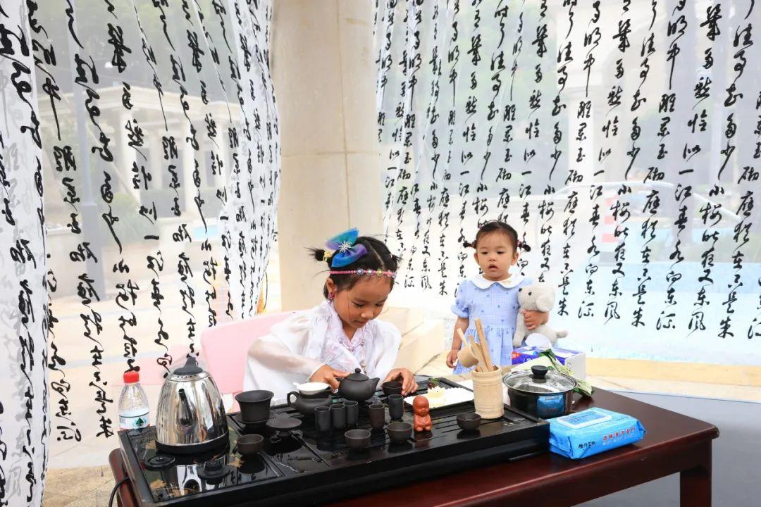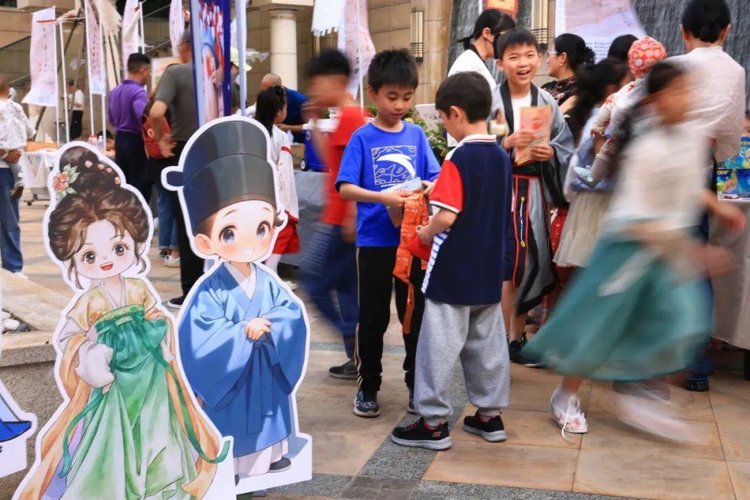 現(xiàn)場,古色古香的攤位“各顯身手”,從書法國畫到撫琴品茗,從古代投壺到漢服拍照打卡,從漆扇錘丸到珍珠龍畫……每一處都充滿了濃郁的文化氣息。