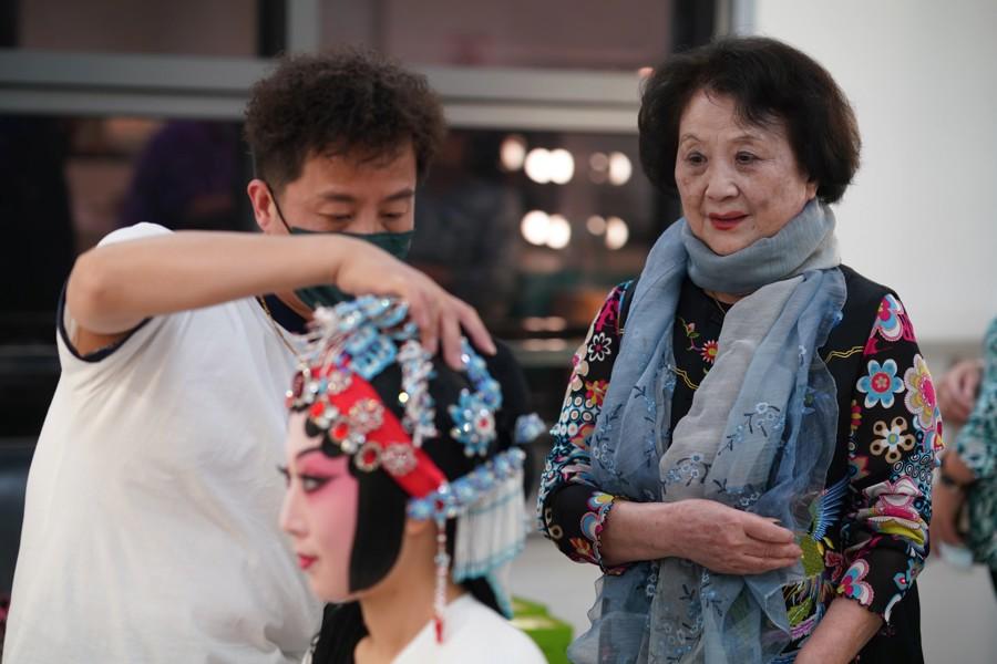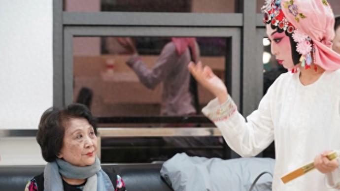 下午,95后梅派青衣煉雯晴主演的《牡丹亭》在上海京劇院5樓聯排,82歲的梁谷音坐在長桌前,目不轉睛盯著演員。