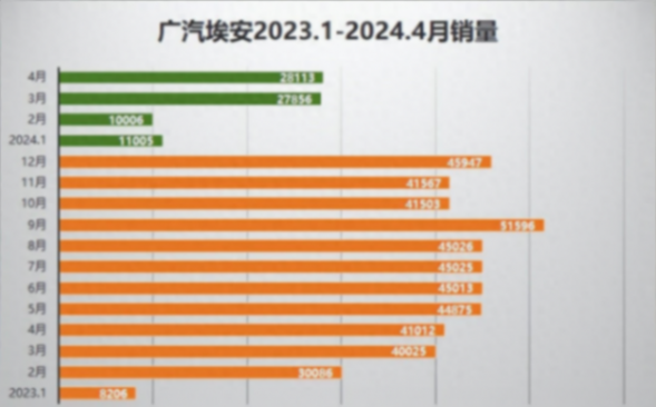 可是到了今年4月,埃安的表現卻急轉直下,當月銷量僅2.8萬輛,同比暴跌31%,環比也下滑14%,一季度累計銷量同比下降14%。