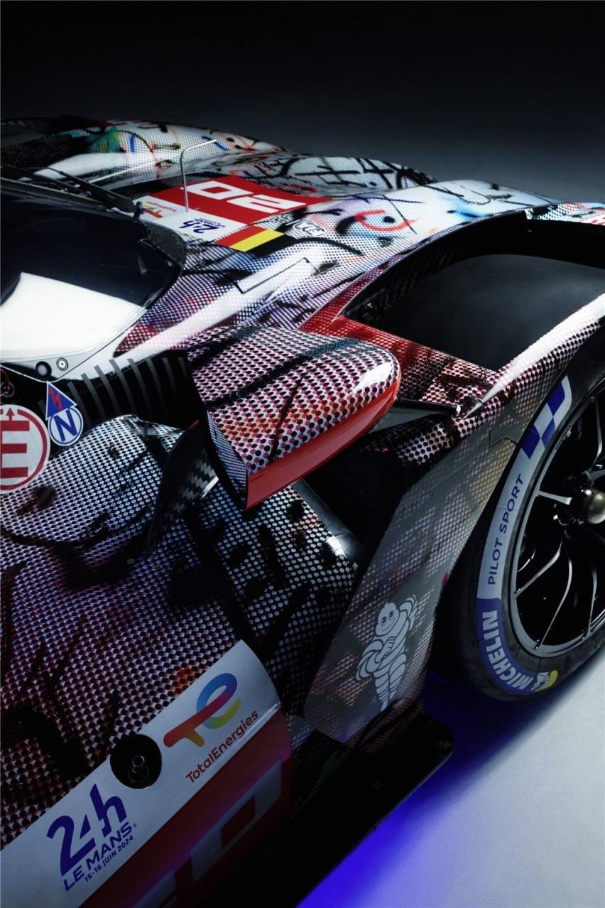 在第20輛寶馬藝術(shù)車的創(chuàng)作過程中,朱莉·梅赫雷圖將多層點(diǎn)陣、彩色絲網(wǎng)印料和其作品特有的黑色線條疊加,利用3D映射技術(shù)把所得的圖像作為高分辨率照片包裹在車輛的輪廓上,量身定制出具有獨(dú)特藝術(shù)風(fēng)格的“戰(zhàn)袍”,使這輛BMW M Hybrid V8滿足勒芒參賽要求。