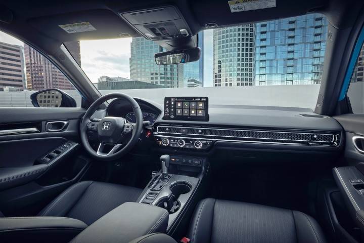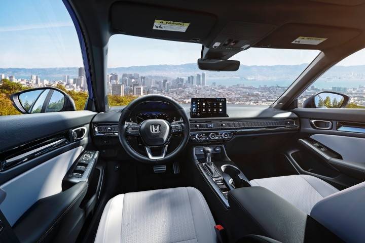 內飾部分,2025 年款美規 本田思域在所有 Hybrid 版本均提供灰色布局,Sport Hybrid 車型將標配天窗、雙前座加熱座椅及雙區恒溫空調,Sport Touring Hybrid 車型則額外增加真皮座椅、12 支喇叭的 Bose 音響系統、9 吋多媒體觸控熒幕 (支援無線 Apple CarPlay 及 Android Auto),另外頂規車型首度整合 Google 多元服務,涵蓋 Google Assistant、Google 地圖與 Google Play App,可提供語音控制、導航及多媒體播放等功能。