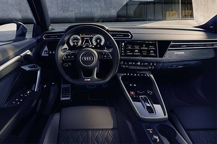 在駕駛座艙設定上,S3 理所當然的標配S line 套件版本,數位駕駛界面與先前公布的 A3 S line 版本無太大差異,不過方向盤卻是運動化版本的平底跑車版本,并采用紅色外露車縫線來迎合運動化本色;此外,最大不同之處,就是 S3 駕駛模式較一般版本 A3 多了 Dynamic Plus 模式,總計來到 6 種駕駛模式的設定。