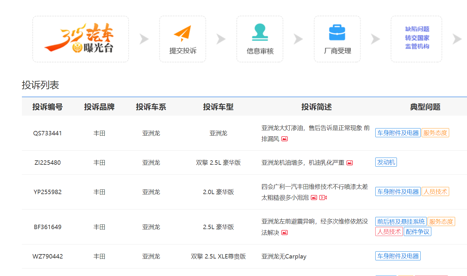 此外,在中國網汽車等第三方汽車網站上,存在一些豐田亞洲龍的投訴,涉及到質量和售后服務等方面。
