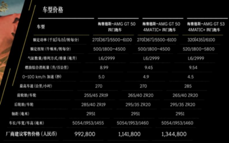 | 奔馳 AMG GT 53 4MATIC + 四門跑車 | 134.48 萬元 |