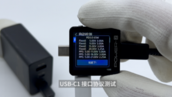 使用POWER-Z KM003C測試儀檢測出三星65W三口充電器USB-C接口僅支持PD3.0、DCP協議。