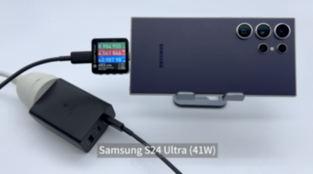 為 Samsung S24 Ultra 充電,使用 POWER-Z KM003C 測試儀測得功率為 8.98V 4.56A 40.99W。
