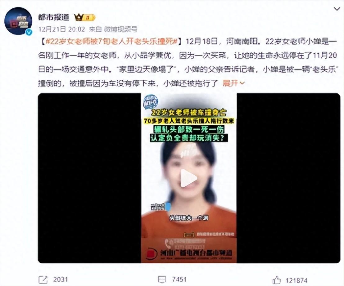 像去年12月份的一起事故,一名年僅22歲的女教師,被一輛老年代步車撞死以后,因為對方年過70,代步車又沒有任何保險,導致這位女教師家屬幾乎沒有伸冤的可能。