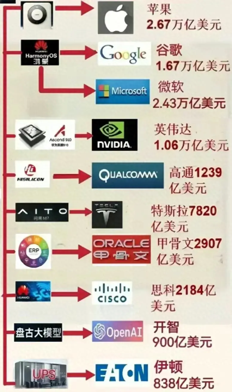 總以為華為是一家強大的科技公司,看了這張圖后才明白了為什么美國要對華為趕盡殺絕。除之后快!