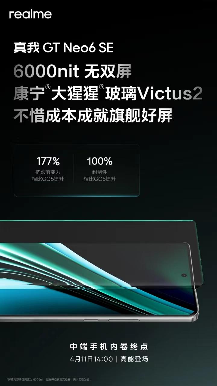 根據官方介紹,真我GT Neo6 SE所采用的康寧大猩猩玻璃 Victus2屏幕采用全新的玻璃組分,面對粗糙表面時提供更好的抗跌落能力,并保持了優秀的抗刮擦性能,相比 GG5 提升了 177% 的抗跌落能力,耐刮性也提升了 100%,可以說真我這次不惜成本成就一塊旗艦級好屏幕。