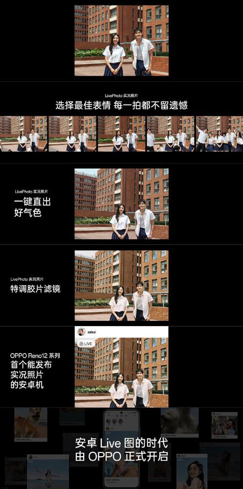 影像方面,OPPO Reno12全系標配 5000萬 AI 全焦段人像三攝,多種場景輕松應對。值得一提的是,OPPO Reno12還是首個可以在小紅書發布實況照片的安卓手機,實況照片可疊加OPPO經典的美顏效果,一鍵直出好氣色;支持疊加多種濾鏡效果,特調的膠片濾鏡,讓記憶變得更加生動;支持全焦段和前后置,默認封面幀支持ProXDR顯示。此外,新機還支持AI閉眼修復、AI消除、AI 摳圖功能。