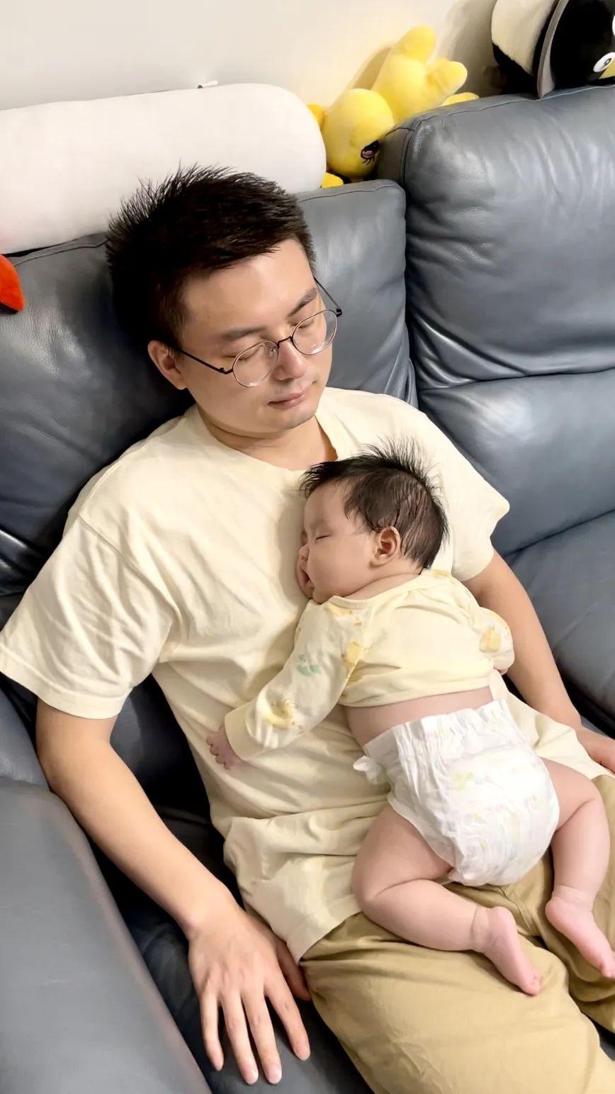 那段時間,我特別累。有時候下班回家陪小孩的過程中,我直接就睡著了。我老公會把家務都做了,包括洗衣服、洗奶瓶等。