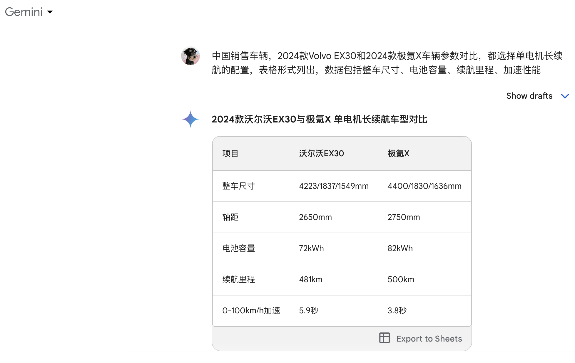 前幾天想了解一下最新的Volvo EX30和新款極氪X的一些配置,往常肯定是到各自的官網看一下或者到汽車之家對比一下。