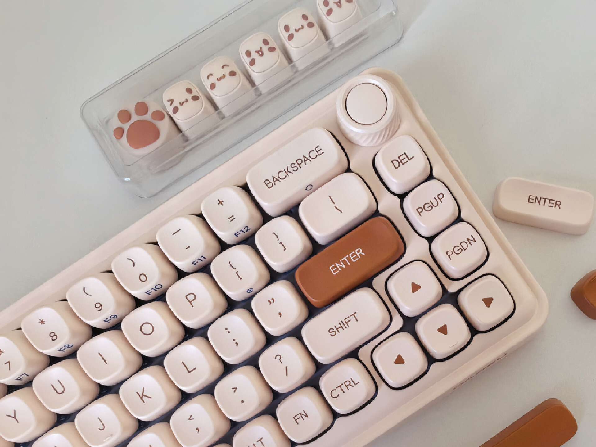 這款達爾優(yōu)小方糖Z68三模機械鍵盤,我入手了帆布白配色,奶茶色與咖啡牛奶等顏色的融入,使得整體鍵盤更加溫柔氣質(zhì),搭配上硅膠表情包鍵帽,以及貓抓套后又變得俏皮可愛,不僅按壓上手感舒適,在顏值上也是更抗打。