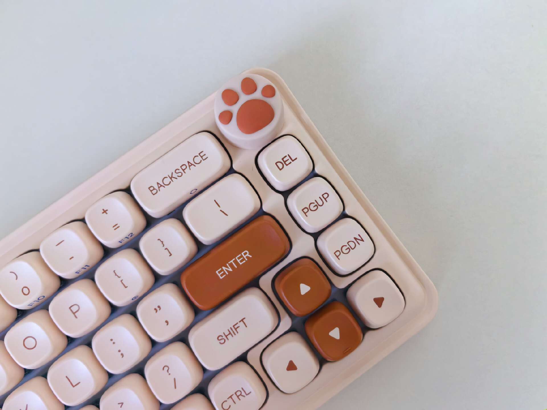 同時從側(cè)邊也能看出,鍵帽邊角設(shè)計圓潤,長時間打字也不硌手,圓潤復(fù)古的SA球帽也更加貼合女生的手指,游戲發(fā)燒友和畢業(yè)論文打字的友友們真的很需要吧。