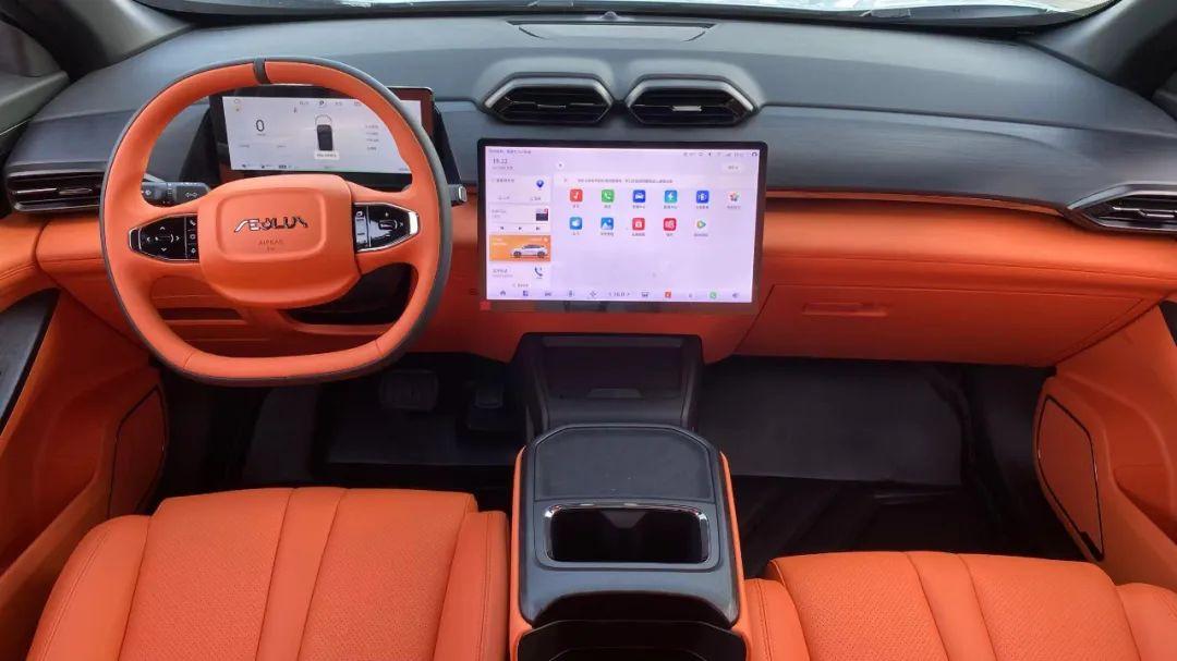 打開車門,黑橙的內飾配色非常有活力。10.25英寸液晶儀表屏、全新的雙輻式多功能方向盤、浮島式中控臺等設計,都很有設計感。而且中控上方的空調出風口很別致。下方則是懸浮式的中控大屏,尺寸達到了同級領先14.6英寸,融入了高通驍龍8155芯片,開機更快,車機互動絲滑流暢。