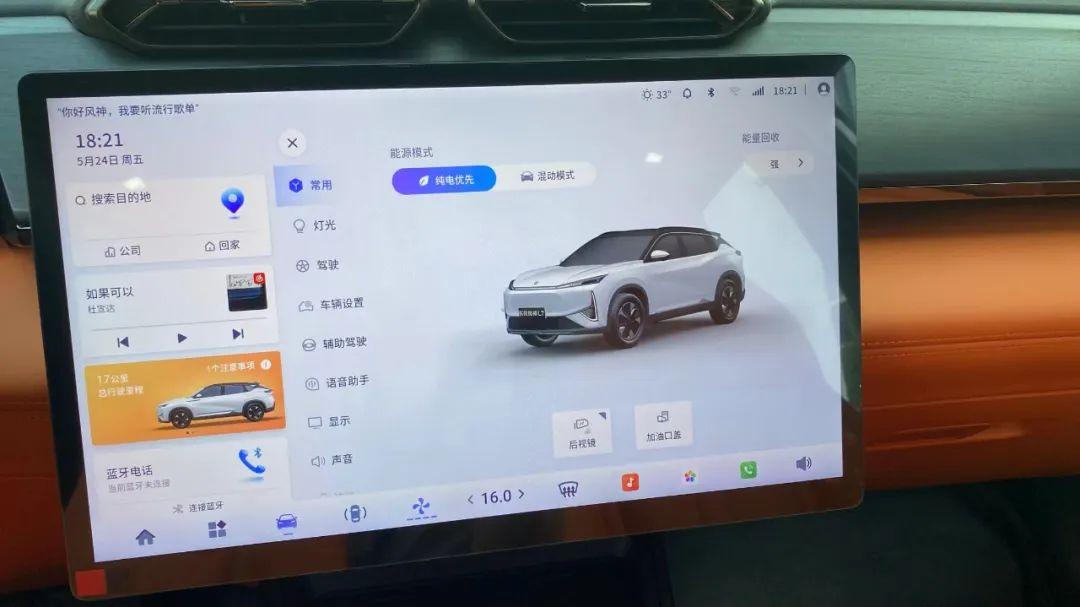 在動力方面,東風風神L7搭載了東風馬赫電混PHREV,可純電、可插混、可增程,且系統綜合功率可達265kW,峰值扭矩615N·m,零百加速僅為6s級,百公里饋電油耗為3.8L,性能與油耗兼顧。
