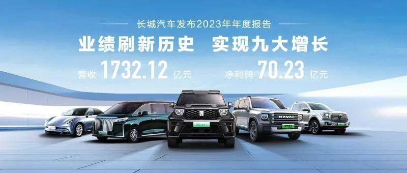 作為投資者最看重的便是長城汽車過去一年的表現如何?長城汽車長城汽車2023年實現營業總收入1,732.12億元,同比增長26.12%;凈利潤70.23億元,扣非歸母凈利潤48.34億元,同比增長7.98%;海外營收536.11億元,同比增長100.41%;總資產達到2,012.70億元,同比增長8.59%。此外,2024年第一季度,歸屬于母公司股東的凈利潤達到32.28億元,同比增長超17倍,創歷史同季度營收及盈利之最。