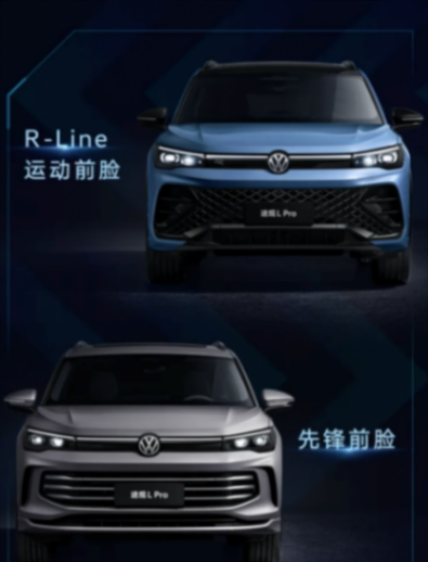 外觀方面,跟現款相比,途觀L PRO有著很大變化。其中標準版前臉采用了橫幅鍍鉻飾條點綴的進氣格柵, R-Line版則是熏黑網格組成的進氣格柵,運動感更強一些。而格柵上側部分,采用貫穿式燈帶連接前大燈組。