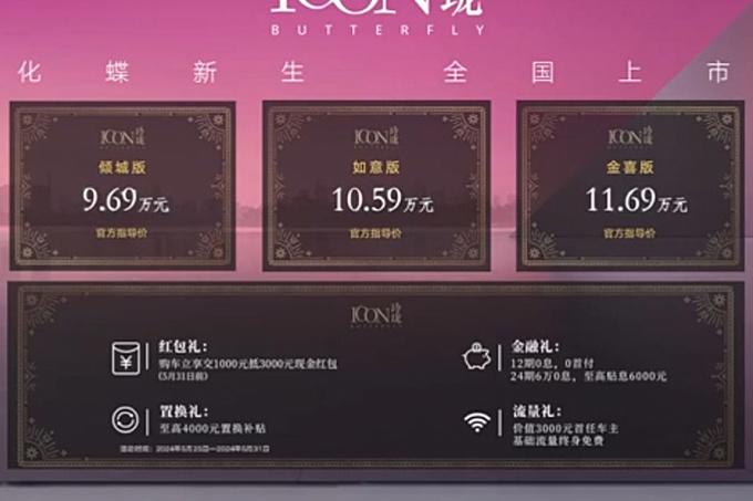 5月25日,吉利2024款ICON玲瓏正式上市,官方指導價為9.69萬元-11.69萬元,比老款便宜1.3萬元。新車共推出傾城、如意、金喜3款車型,主要對外觀、內飾顏色以及配置調整。