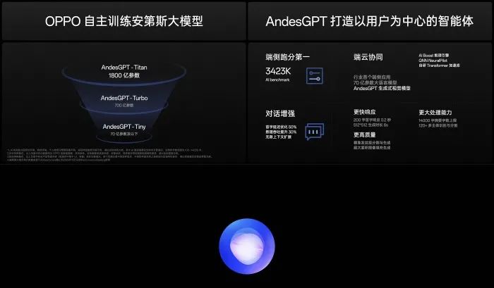 也就是說,OPPO耗時(shí)三年之久,才推出了自研商用大模型AndesGPT。OPPO的AndesGPT大模型根據(jù)不同參數(shù)量,主要分為三種:70億參數(shù)量的Tiny、700億參數(shù)量的Turbo,以及1800億參數(shù)量的Titan。