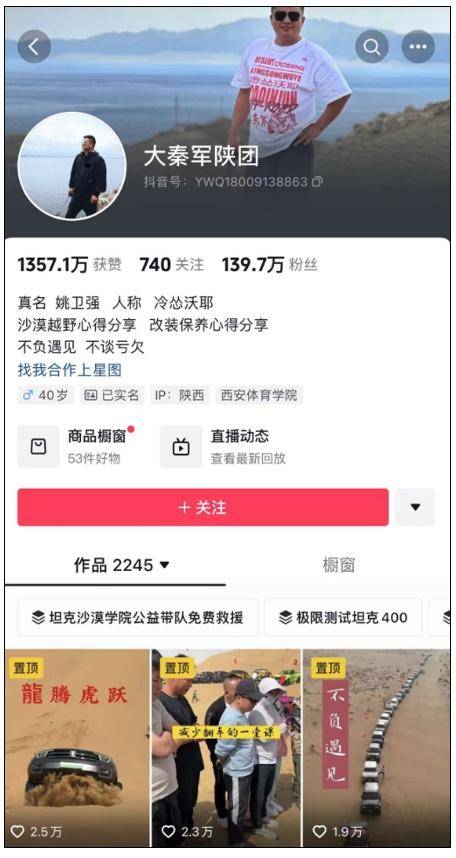 目前,該汽車博主的抖音賬號(hào)“大秦軍陜團(tuán)”約有140萬(wàn)粉絲。記者查詢發(fā)現(xiàn),在其賬號(hào)上,前述與方程豹“豹5”相關(guān)的測(cè)試視頻已下架。