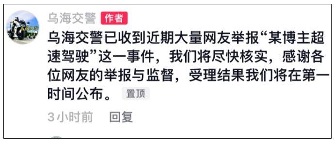 后來(lái),針對(duì)該事件,烏海交警也于2023年12月3日在其社交媒體賬號(hào)上回應(yīng)稱,已收到近期大量網(wǎng)友舉報(bào)“某博主超速駕駛”這一事件,將盡快核實(shí)。