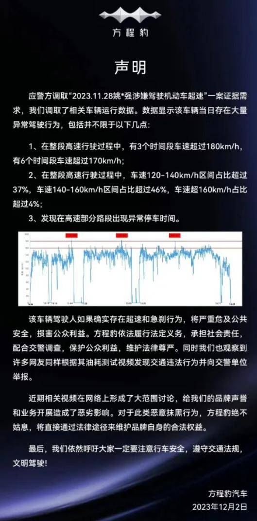 這已經(jīng)不是方程豹汽車第一次就此事發(fā)聲了。2023年12月12日,方程豹就發(fā)布了一則聲明,列出了相關(guān)數(shù)據(jù),就此事進(jìn)行了回應(yīng)。