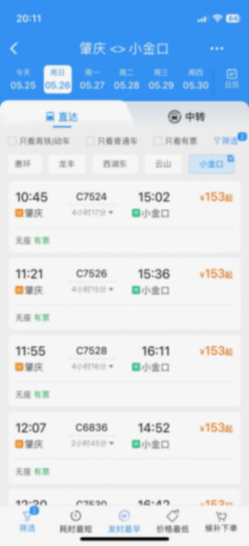 5月25日,12306網站顯示,廣東城際“四線”票價公布,從肇慶到惠州全程票價153元,約0.59元/公里。