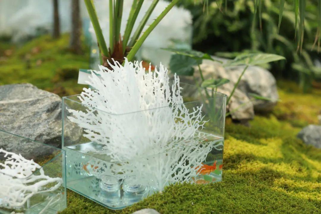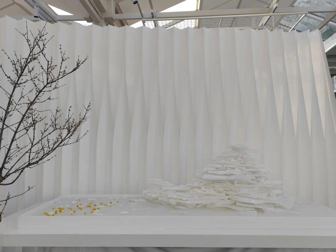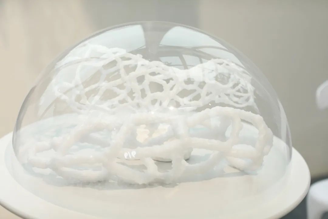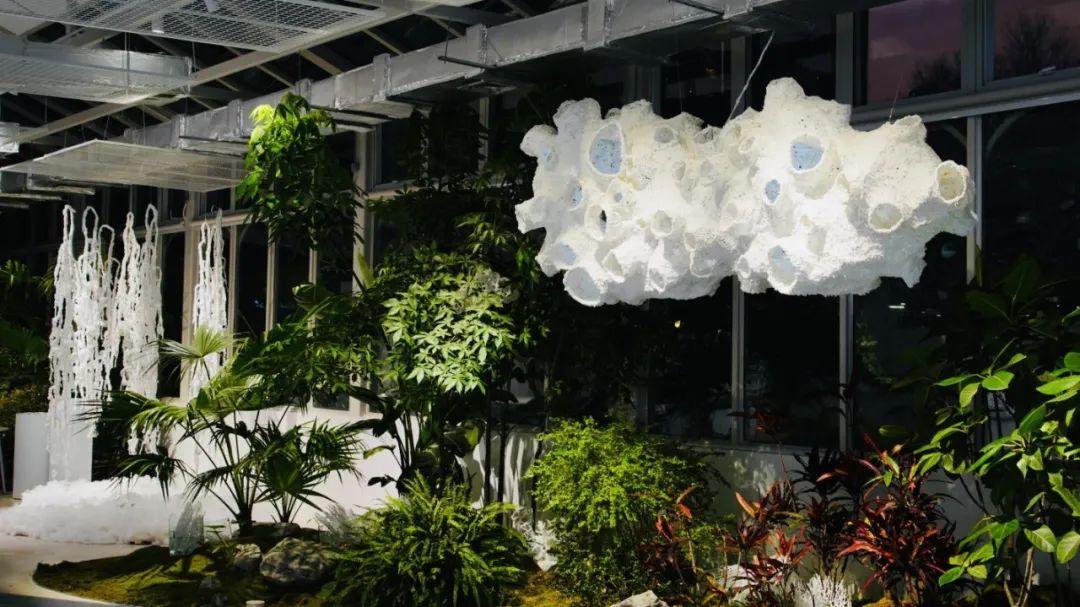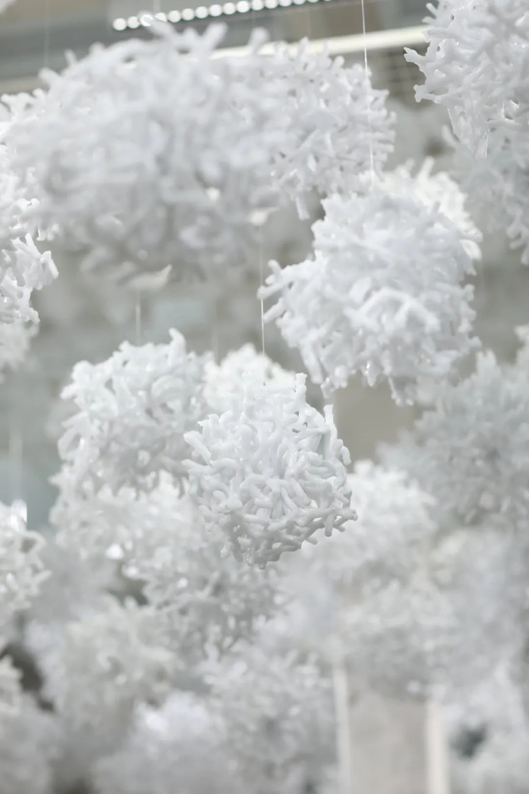 據介紹,這片“冰雪世界”是園藝中心專門打造的“剪云雕雪——冰雪裝置藝術展”,由擅長白云藝術的裝置藝術家謝志峰呈現。展覽由大型裝置和小品雕塑組成,共有十個作品,包括《剪云雕雪》《冰淚雪墻》《冰川火?!贰杜钌疆惢堋贰堆┕庠票ぁ贰栋谆汉鳌贰秹艋门萦啊贰睹妨⒑贰堆┠龝r刻》和《表白雪墻》。這些作品呈現了一個超現實的“冰雪云夢世界”,每件作品都有獨特的主題和靈感來源。藝術家們通過使用石蠟、尿素、仿真珊瑚等非傳統材料,呈現出了雪花、淚墻、冰川、仙境、堡壘、珊瑚和夢幻泡影等自然和人造景觀。