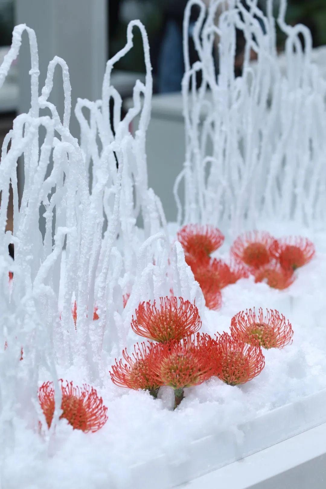 與《剪云雕雪》相呼應的是《蓬山異卉》,這副作品是模擬自然的雪景,蓬萊仙境般的奇異冰雕,提醒市民體驗人間風景正當時。