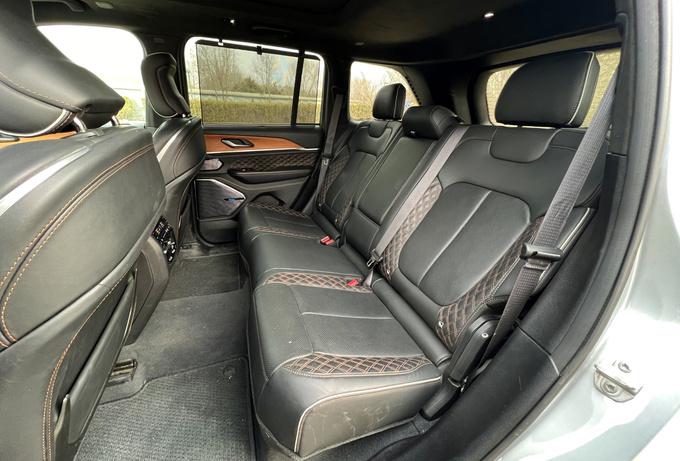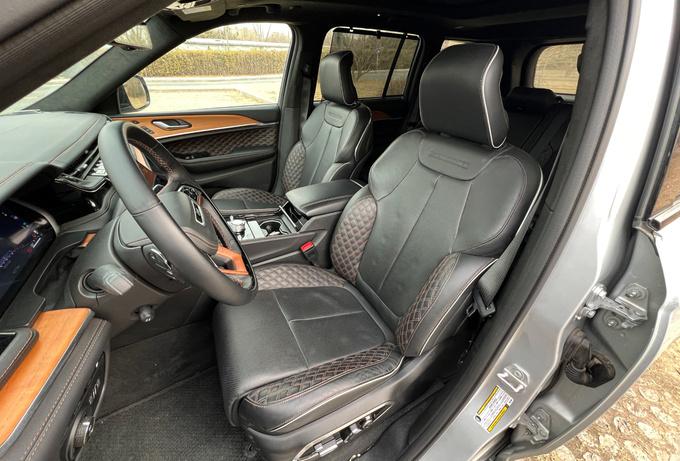 全新大切諾基4xe的座椅延續了美系車型寬大舒適的特點,同時還采用了高級真皮材質進行包覆,紋理樣式也很考究。整體的觸感和乘坐感受都足夠細膩柔軟,座椅的包裹性和支撐性都非常出色。另外前排座椅的配置也很高,加熱、通風、按摩一應俱全。