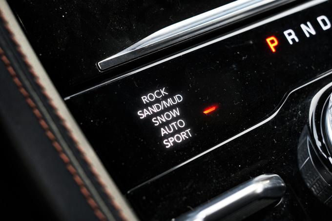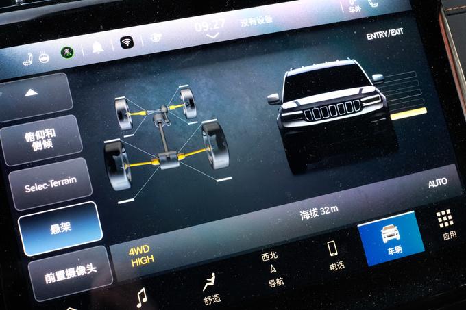 Selec-Terrain提供5種路況模式,同時大切諾基4xe還標配主動式雙速分動箱,具備越野4 - LOW低速四驅模式,提供2.72倍扭矩放大,攀爬比47.4:1。另外在插電混動系統的協助下,越野性能進一步提升,電機高效直白的扭矩真的會給越野加分,甚至即便在純電模式下也能應付一般的障礙。