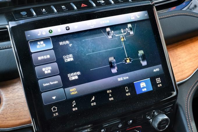 本次測試的大切諾基 2.0T 4xe 巔峰版是目前全系的頂配版本,配置方面自然不用擔心,比較高級的配置包括了:空氣懸架、全景影像、L2級駕駛輔助、夜視系統、自適應遠近光燈、副駕駛娛樂屏、HUD抬頭顯示、主動降噪、方向盤加熱、前排座椅加熱/通風/按摩、后排座椅加熱/通風、Mcintosh音響等。這樣的配置表現絕對要比同價位豪華品牌的低配車型要豐富的多。