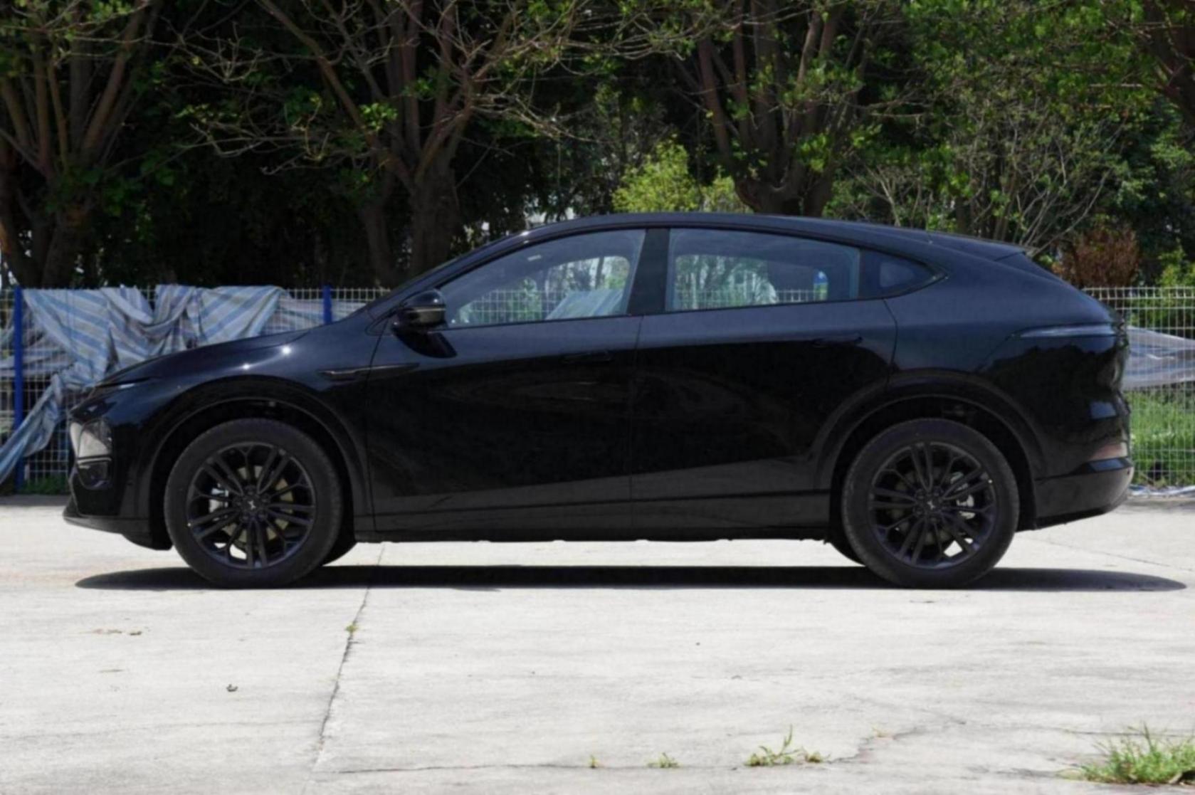 從側(cè)面看,車身姿態(tài)前低后高,車頂采用大溜背式設計,看起來比較運動,同時車子配備了無框設計車門、隱藏式門把手、手機藍牙鑰匙,符合主流設計,再加上“暗夜黑”的車身配色,看起來比較動感。車尾方面,造型簡潔干練,擾流板延伸至后尾窗的上沿,有效降低風阻系數(shù);貫穿式尾燈與前臉貫穿燈帶類似,都是狹長扁平的設計。