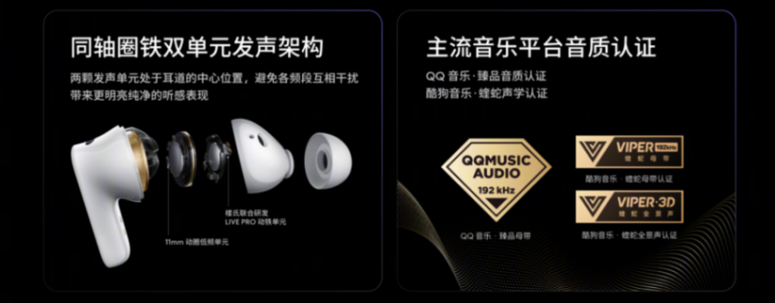 在音質方面,魅族LIVE AI內置了來自與樓氏聯合研發的5mm LIVE PRO動鐵單元,采用了同軸圈鐵雙單元發聲架構。這一結構避免了各頻段之間的干擾,聲音更加純正。并且魅族LIVE AI在國內首發了正面開孔的RAN動鐵單元,為耳機提供了超高解析度的音頻,在足夠小的體積里創造出了出色的高頻性能。在人耳無法聽到的40kHz高頻下,它依然擁有清晰的高頻音質表現。