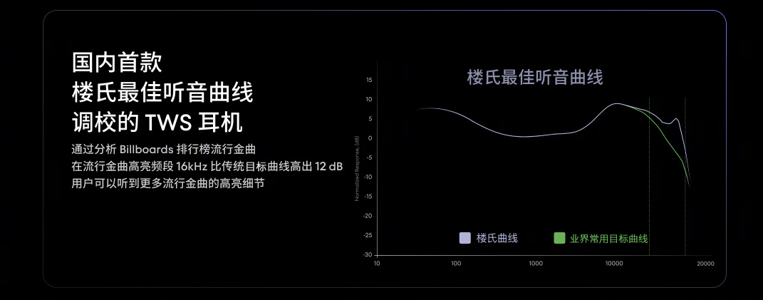 樓氏研究近20年的流行音樂,發現高頻是極其關鍵的部分,好的耳機必具備重現高頻的能力,為此專門針對耳機高頻響應制定的新頻響曲線。這項研究結果對于音頻設備制造商來說非常重要,因為它強調了在設計耳機和音頻播放設備時需要考慮不同用戶群體的特定需求。