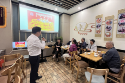 除了開展認知障礙科普宣傳、預防干預等活動,天山路街道社區長者食堂還結合傳統節假日開展各類主題活動,如聯合社區衛生中心家庭醫生工作室等推出“關愛長者食在健康”等營養健康科普宣講,聯合社區舉辦“九九重陽節 濃濃敬老情”重陽茶話會活動等,還在用餐高峰之余面向老人提供休憩、免費茶水和報紙雜志閱讀等服務,進一步豐富社區長者的精神文化生活,也為居民們增添又一處公益性的多元活動空間。