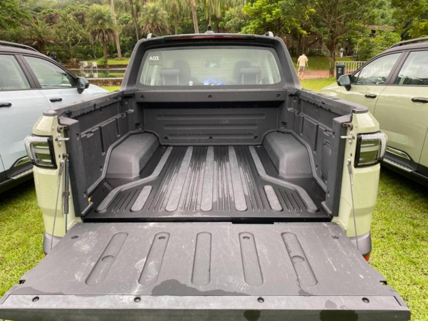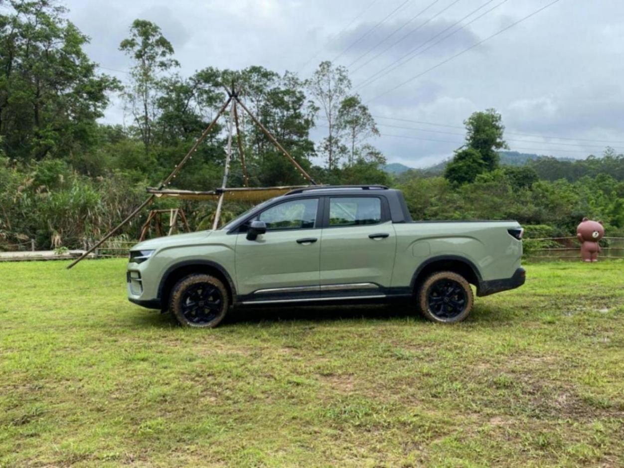 作為皮卡車的基礎它也是具備的,比如較高的離地間隙、側裙和車尾的黑色防擦條、實用的貨箱等,車頂還給配備了行李架。并且從側面比例我們能夠看出,雷達地平線的座艙與后斗比例也與普通的皮卡不同,座艙部分所占據的空間相對會更多一些,因此在舒適性方面相比普通的皮卡會更舒適一些。