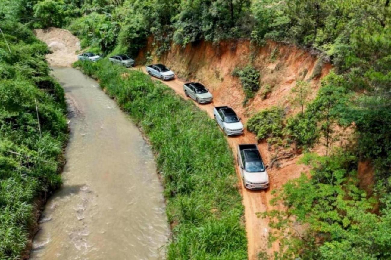 進入越野場地后,才是這臺雷達地平線可以大展拳腳的地方。這次越野場地是在花都灝園汽車文化體驗中心,這里保留著較為原始的自然風貌,有很多原始的泥巴路,再加上最近幾天連續的風雨洗禮,那些泥巴路甚至有些泥濘不堪。這樣的路況,非常考驗車輛的底盤穩定性和動力水平,不然很容易發生側翻以及溜坡的現象。