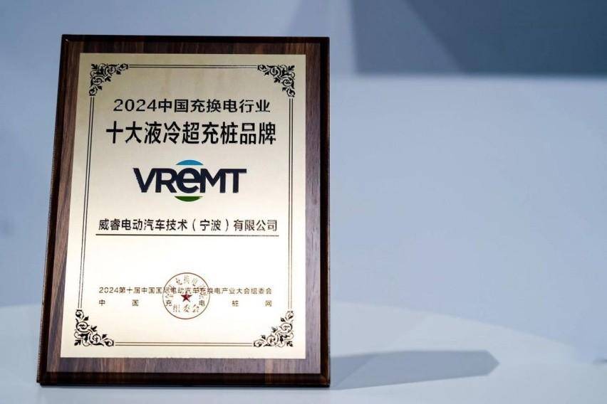 憑借卓越的企業實力與創新能力,威睿更榮獲組委會頒發的“2024中國充換電行業十大液冷超充樁品牌”。