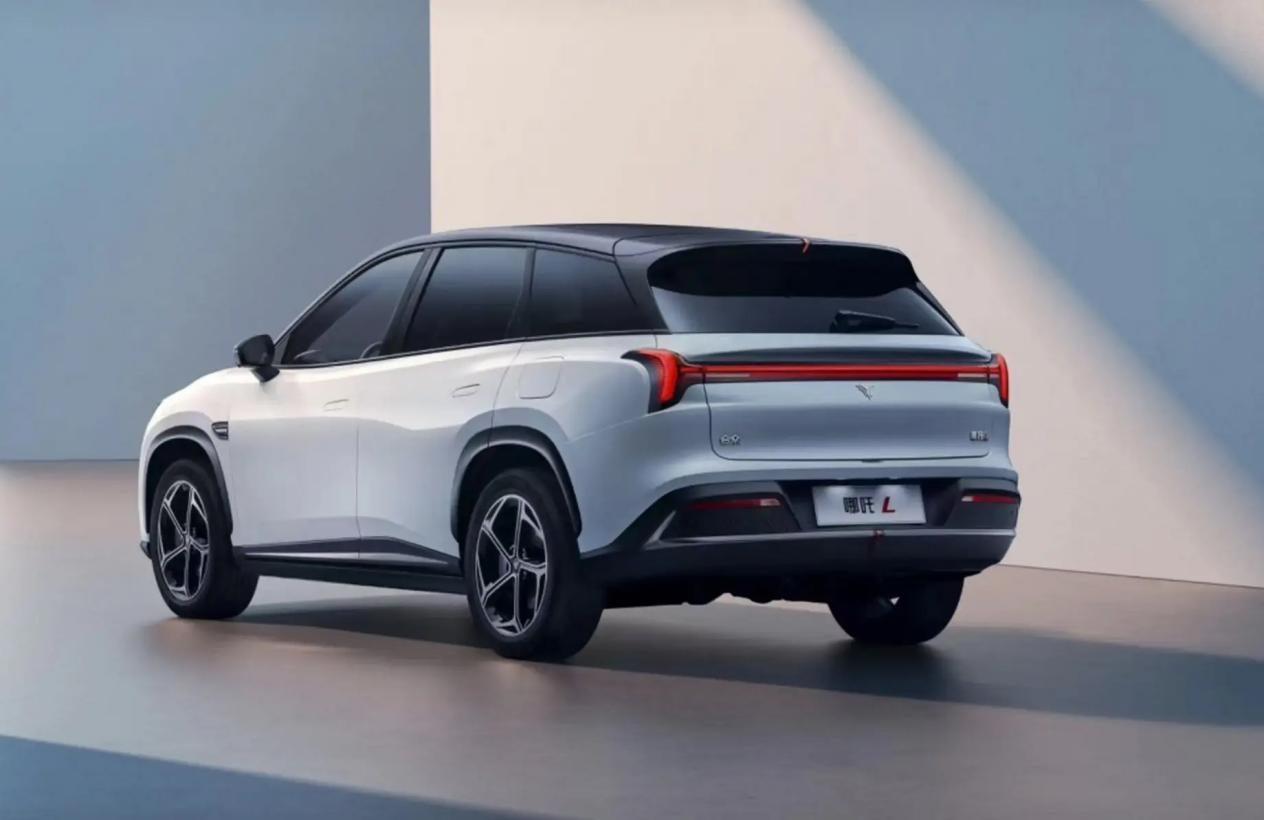 從外觀設計上來看,哪吒L與之前上市的增程版車型風格一致,配備了三段式LED日間行車燈,下方的擴散器以及點陣式進氣格柵也提升了整車的運動氛圍,車身側面則是采用了懸浮式車頂的設計,配備了隱藏式門把手,車身尺寸為4770/1900/1660mm,軸距為2810mm。車尾則采用了貫穿式尾燈,后備箱容積為583L,放倒后排后可擴展至1434L。