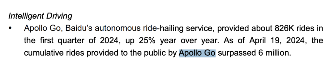 在前不久公布的2024年百度第一季度財(cái)務(wù)數(shù)據(jù)中,旗下蘿卜快跑平臺(tái)累計(jì)訂單已經(jīng)超過了600萬單,本季度訂單量82.6萬單,同比增長(zhǎng)了25%。