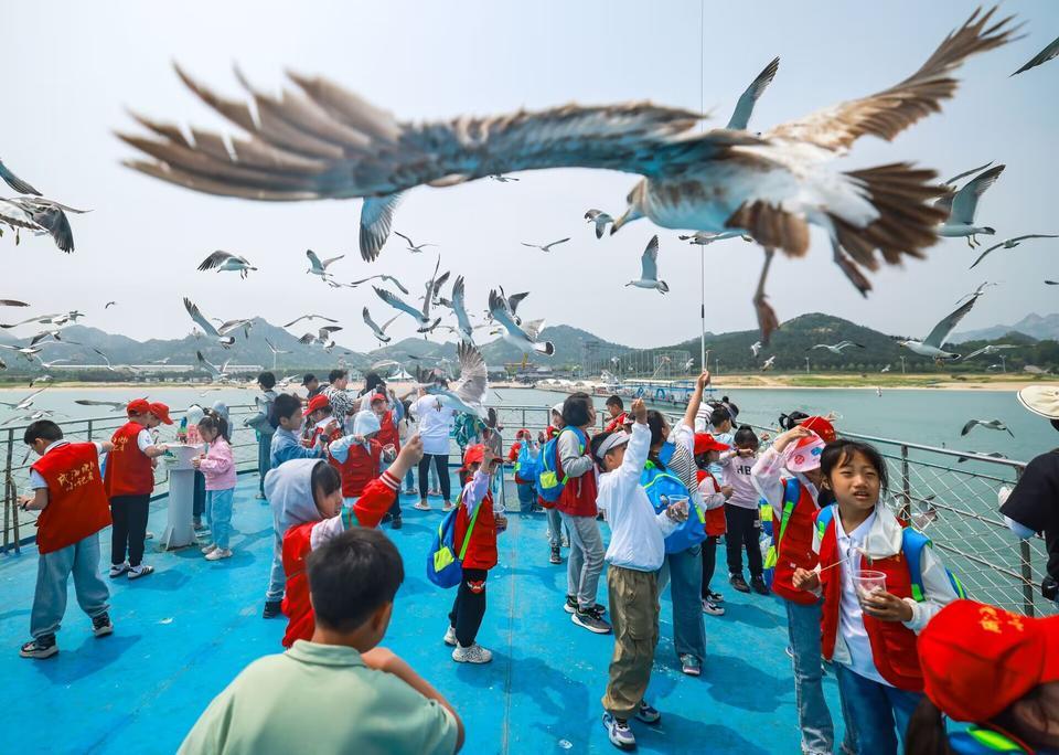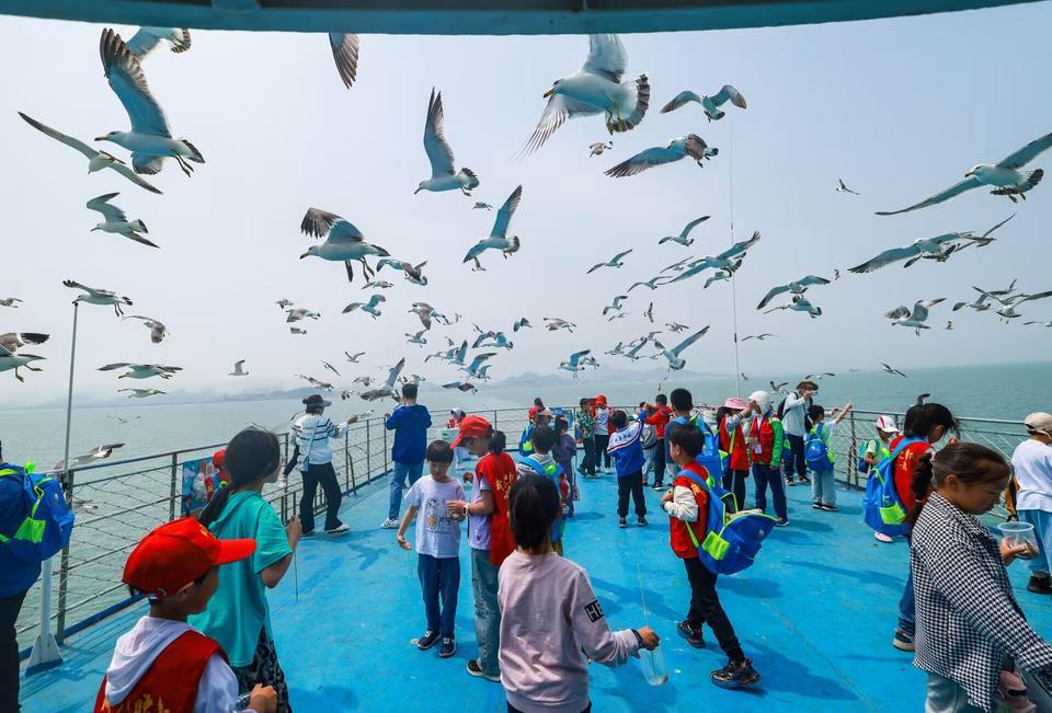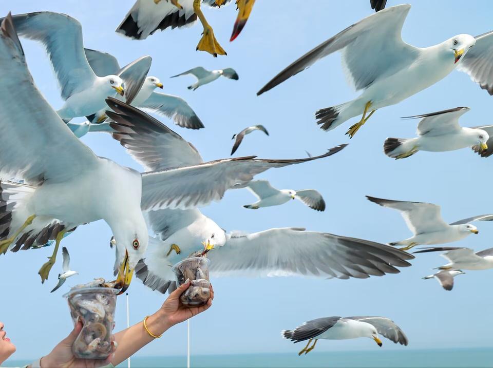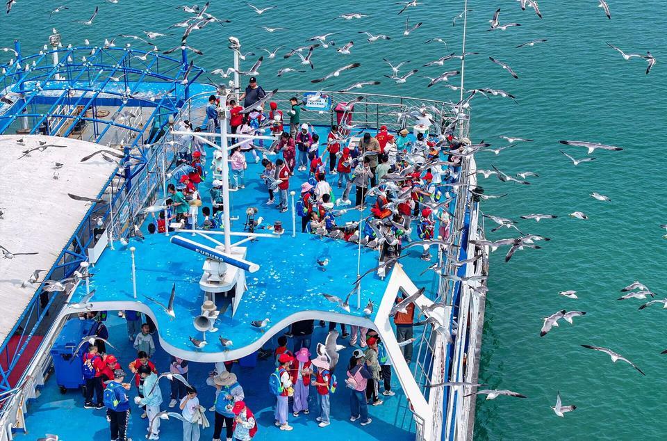 為讓游客們近距離感受黑尾鷗的熱情,當地開通了環島游專線,喂食黑尾鷗成為環島游的最大特色,讓游客們體驗黑尾鷗一路隨行的浪漫之旅。