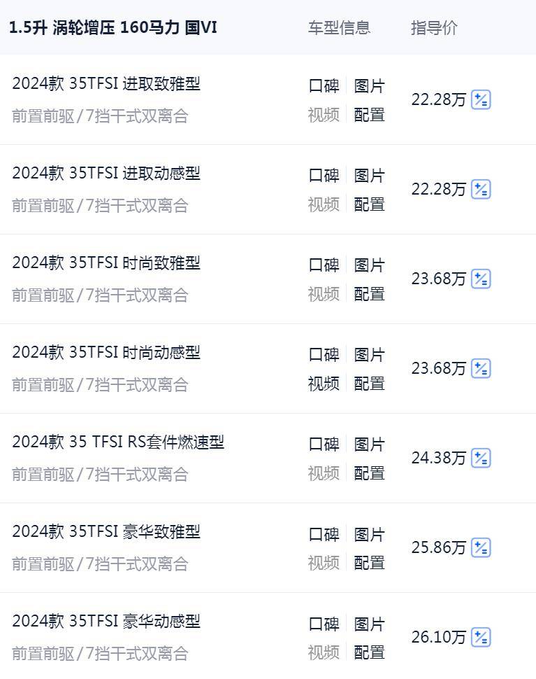 動力方面,奧迪Q2L全系搭載了大眾最新的1.5T渦輪增壓發動機,最大馬力160Ps,峰值扭矩250N·m,搭配7速干式雙離合變速箱,百公里加速時間9.3秒,WLTC綜合油耗6.49L。從整體來看,這款車還是主打了經濟性,性能方面表現一般。