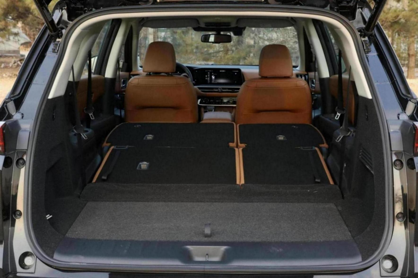 我們先來詳細說一下空間,探陸的車長為5130毫米,車寬為1981毫米,車高為1767毫米,軸距達到了2900毫米。從這些參數來看,它就為寬敞的空間提供了基礎條件。我們今天提到的車型采用的是2+3+2的座椅布局(它還有2+2+2的座椅布局)。它采用的是全尺寸大三排的布局,擁有人性化的通道,第三排座椅可以支持一鍵進入。并且,第二排和第三排的座椅可以進行全平的放倒,放倒之后得到了一個平整的大床,外出游玩非常合適。