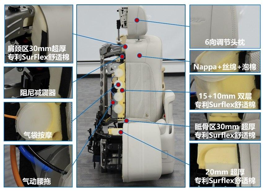 別克GL8插混版將提供NAPPA真皮材質包覆的座椅,座椅的坐墊和椅背看起來頗為寬厚,座椅內部使用SurFlex舒適棉填充,局部區域厚度可達到30毫米。同時,別克GL8插混版的座椅還集成氣袋按摩、氣動腰托、阻尼減震器等功能配置,為乘坐舒適性提供保障。