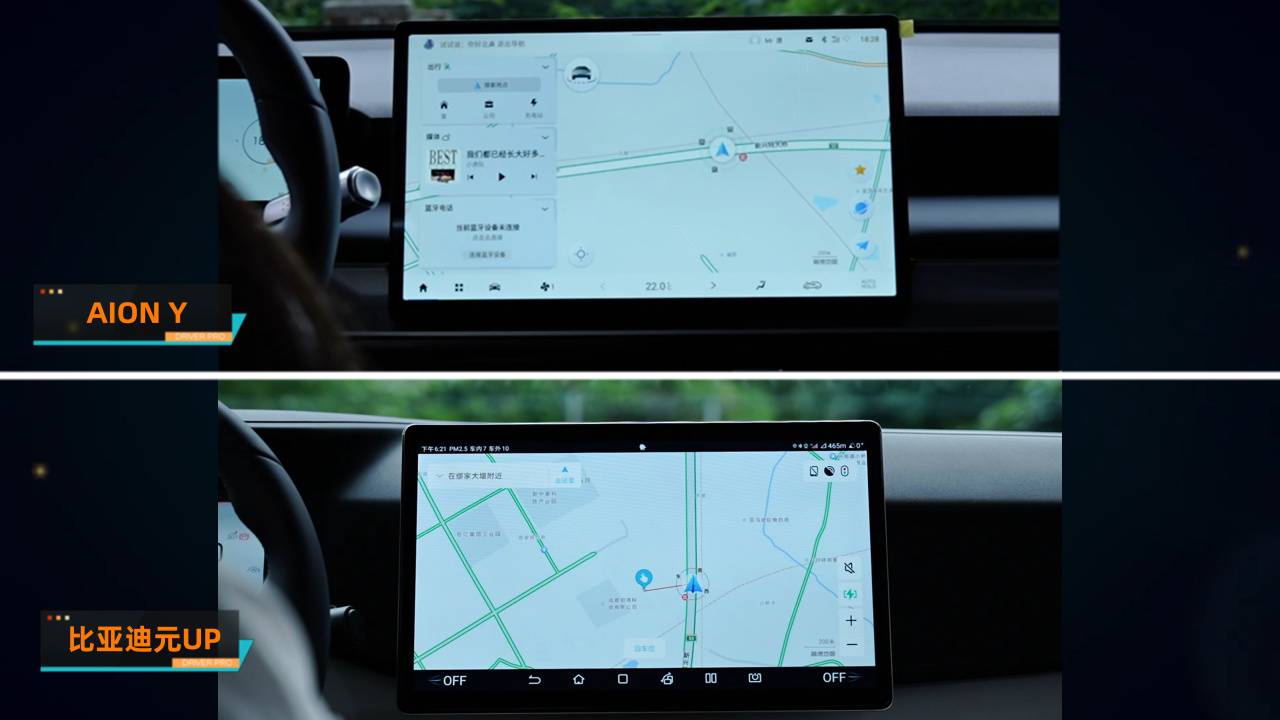 AION Y在配置上的優勢,主要在中控屏幕尺寸更大,驍龍6125芯片的運行流暢度、語音交互能力,和比亞迪車型也處在相同水平,不過元UP可以連續完成三個語音指令,證明了比亞迪的高上限。